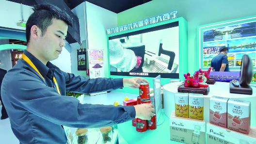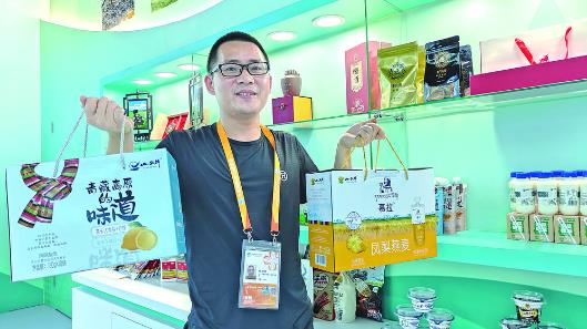青海豆、牦牛肉、黑果枸杞凍干粉、沙棘飲料、拉姆咸味奶茶……展架上,各類產品讓人眼花繚亂,參觀者不斷投來好奇的目光,工作人員耐心一一推介。
