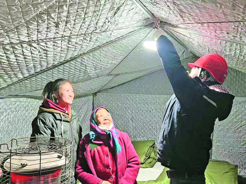 說話間,他手腳麻利地處理完安全隱患,告訴這戶村民說,帳篷內(nèi)的電力僅能照明和給手機充電,千萬不要使用大功率、大負荷的用電設(shè)備。