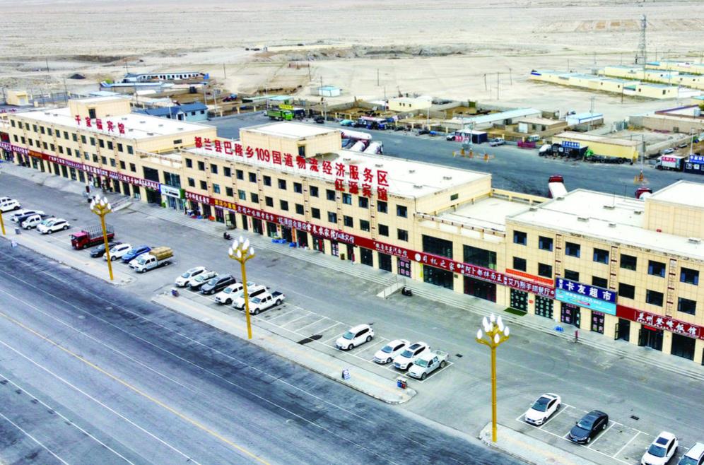 從都蘭縣城出發,沿著109國道向西行駛100多公里,到達巴隆鄉109國道物流經濟服務區。整個服務區干凈整潔,道路一側是一排黃色三層小樓,各類商鋪云集,樓前的空地上停放著不少車輛。