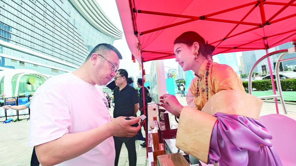 周建華告訴記者,她是被身著華麗藏服的年輕人吸引過來的。“他們的服飾很艷麗,非常有特色,和我之前看到的藏族服飾不一樣。通過現(xiàn)場(chǎng)播放的宣傳片,我們看到了很多非常震撼的美景,有機(jī)會(huì)一定要和家里人去一趟,感受下玉樹的自然風(fēng)光。”