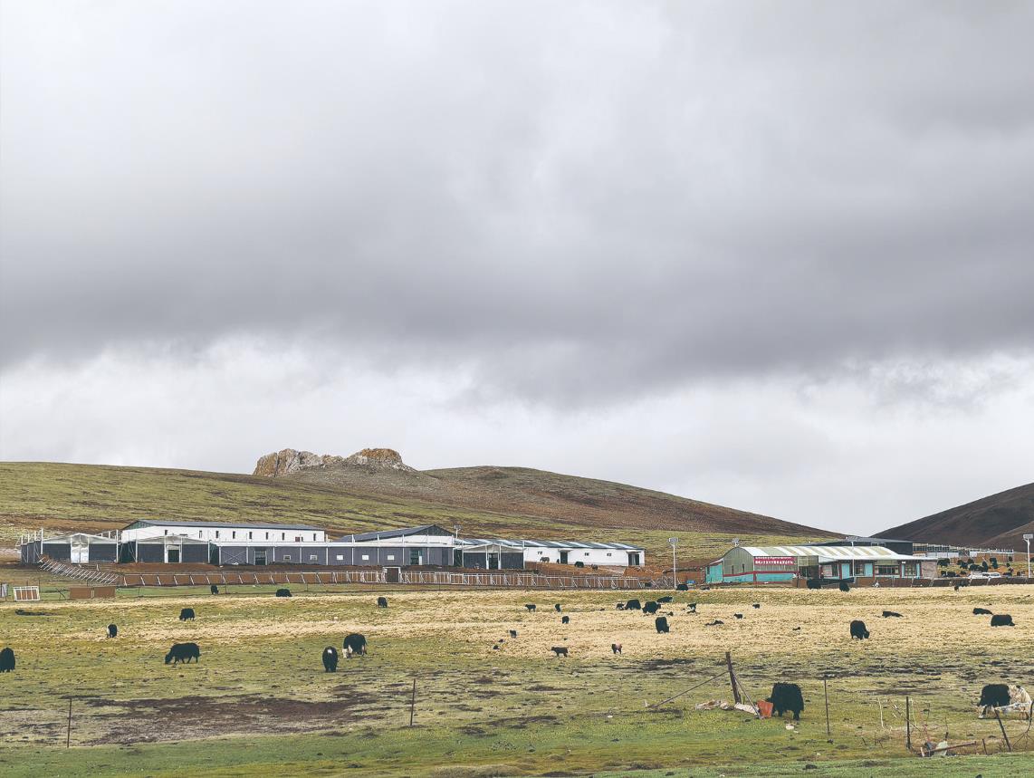 扭頭朝遠(yuǎn)處的牧場(chǎng)看了看,俄金接著說(shuō)道:“時(shí)間不早了,牦牛們應(yīng)該快回來(lái)了。”抓起一把草料,俄金向牧場(chǎng)快步走去。遠(yuǎn)遠(yuǎn)地,放牧員巴丁鬧吾已經(jīng)揮著牧鞭,將牛群緩緩向合作社畜棚的方向趕來(lái)。此時(shí),守候在半山坡的俄金趕忙跑了下去,一邊將手中的草料喂給領(lǐng)頭的牦牛,一邊和巴丁鬧吾默契地配合引導(dǎo)牛群。不一會(huì)兒,牛群逐漸聚攏,慢慢走向山坡上的畜棚。