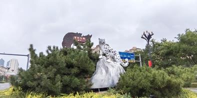 沿行知路一路向南,是西寧野生動物園,也是人們觀賞雪豹的目的地。為了讓市民游客感受到雪豹的魅力,在行知路路口的行知公園里,“站著”一只雪豹“抱抱”。它揮著手,沖著你微笑,兩顆小虎牙盡顯可愛、乖萌。“抱抱”所指的方向,正是西寧野生動物園。