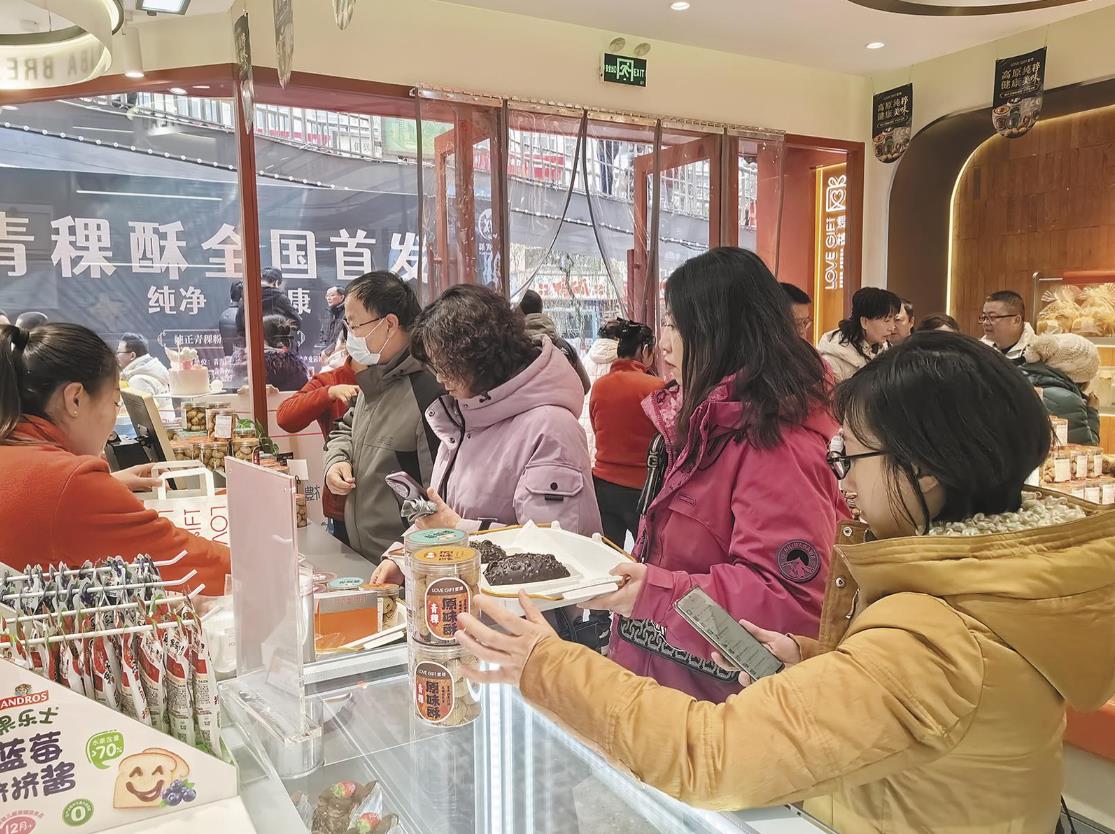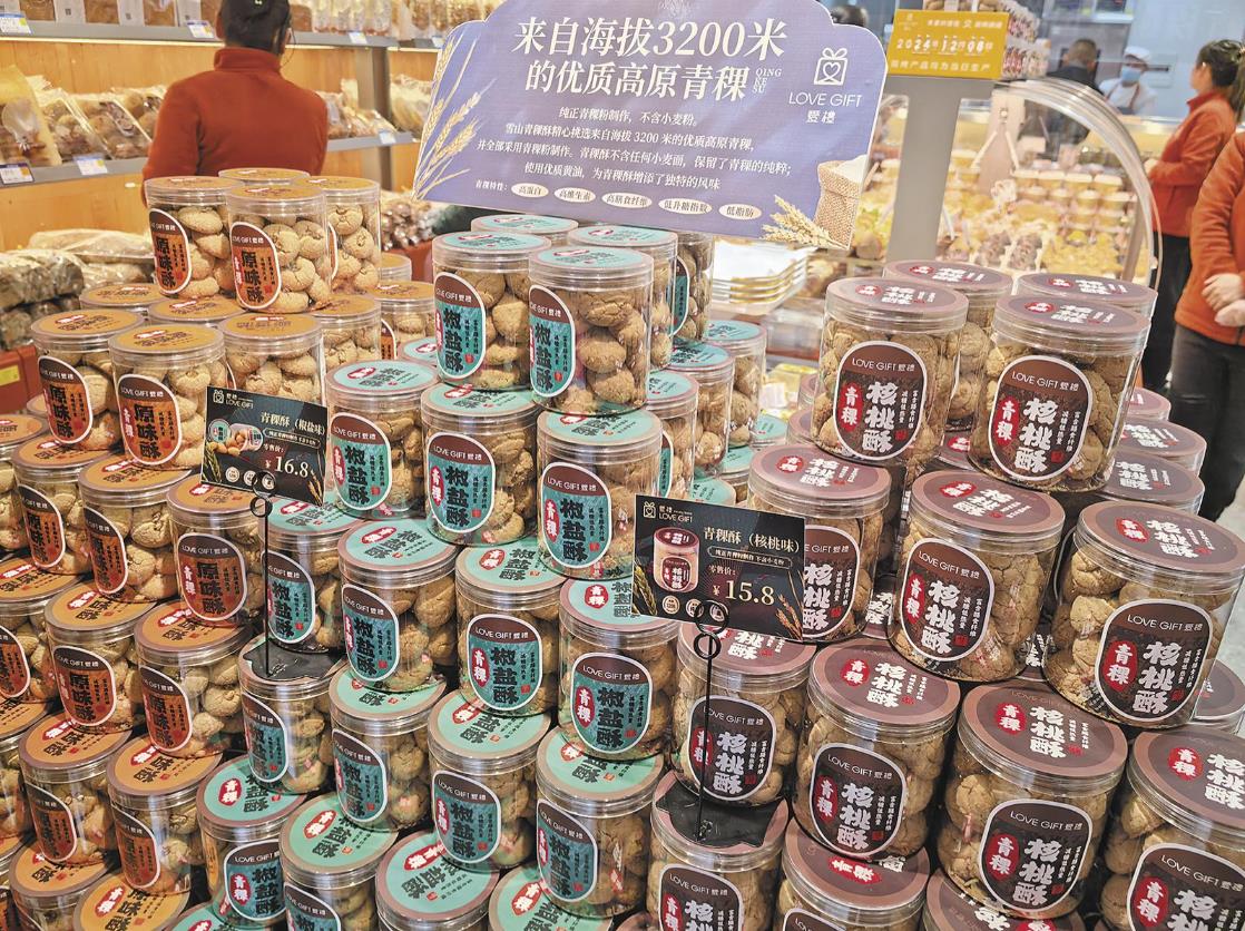 愛禮蛋糕店里,“純正青稞粉制作,不含小麥粉”的標語吸引了很多消費者前來購買,三種口味的青稞酥不一會就被搶購一空,“青稞是個好東西啊,我看配料表上用的還是百分之百的青稞粉,這不容易,以前見的都是摻了小麥粉的食品,這全是青稞粉的食品我買回去給家里老人嘗嘗。”消費者李先生在試吃了青稞酥后購買了6罐。