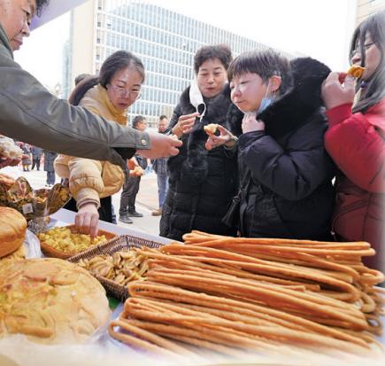 市民品嘗特色小吃。祁曉軍 攝