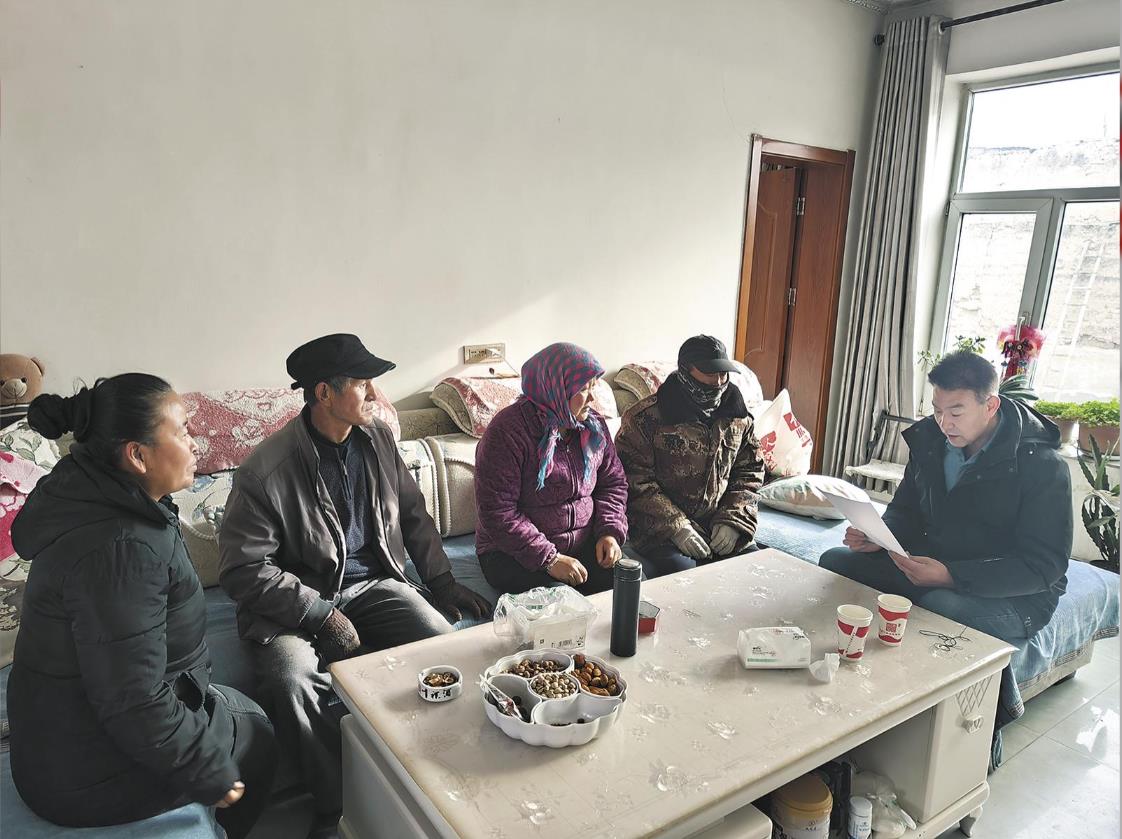 青海新聞網(wǎng)·大美青?蛻舳擞 “鄉(xiāng)親們,今天咱們開(kāi)展‘一宣三促’活動(dòng),喧一喧一號(hào)文件精神,比如說(shuō)‘大力發(fā)展綠色、特色農(nóng)產(chǎn)品種養(yǎng),推進(jìn)農(nóng)產(chǎn)品加工業(yè)轉(zhuǎn)型升級(jí),實(shí)施農(nóng)業(yè)品牌精品培育計(jì)劃,打造特色農(nóng)業(yè)產(chǎn)業(yè)集群,提升農(nóng)業(yè)產(chǎn)業(yè)化水平’這一條,對(duì)咱們農(nóng)民來(lái)說(shuō)是開(kāi)春以來(lái)的大喜訊。”2月24日一大早,海東市民和回族土族自治縣巴州鎮(zhèn)祁家村村委會(huì)掛起了“一宣三促”橫幅,駐村第一書(shū)記孔德香和群眾自備小板凳相聚在村廣場(chǎng)上,拉開(kāi)了“板凳課堂”的序幕。