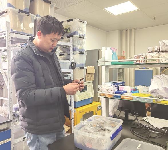 刑睿查看烘干的大型真菌標本。吳予琴 攝