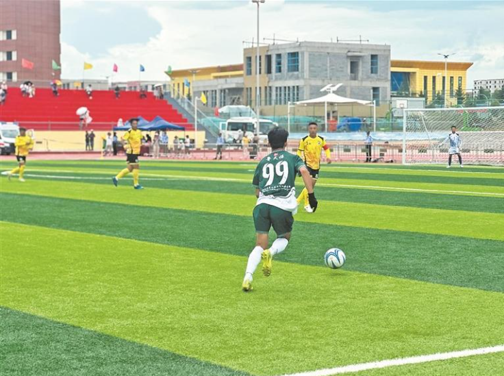 比賽進(jìn)行到22分鐘時(shí),玉樹(shù)牦牛隊(duì)在前場(chǎng)組織進(jìn)攻,一名球員接球后突然一個(gè)假動(dòng)作輕巧晃過(guò)防守隊(duì)員,隨即起腳一記勁射,足球如離弦之箭洞穿對(duì)方球門!場(chǎng)上比分來(lái)到0:2,玉樹(shù)牦牛隊(duì)繼續(xù)領(lǐng)先海北祁連山藏羊隊(duì)。