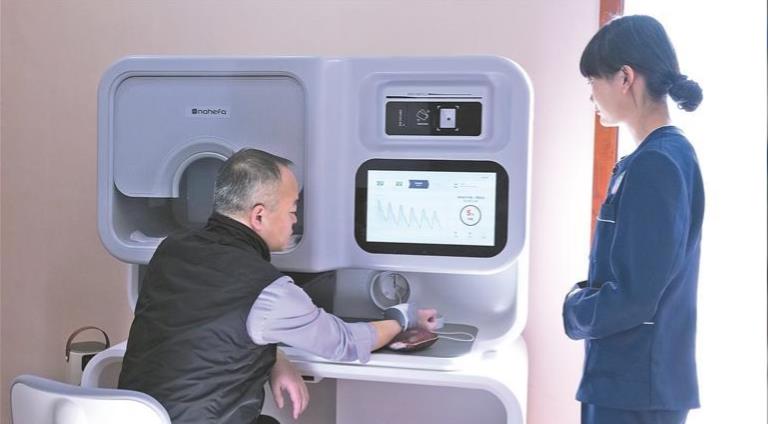 游客在黃金海拔2200青藏高原康養中心使用AI就診儀。城北區委宣傳部供圖