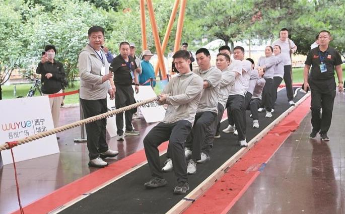 “加油,加油,海西,加油……”廣場西北角,此起彼伏的加油聲吸引了人們的目光。原來,青海省第一屆職工拔河大賽總決賽正在如火如荼地進行,經過各賽區選拔,來到總決賽賽場的共有來自全省各地區的19支參賽隊300余人。