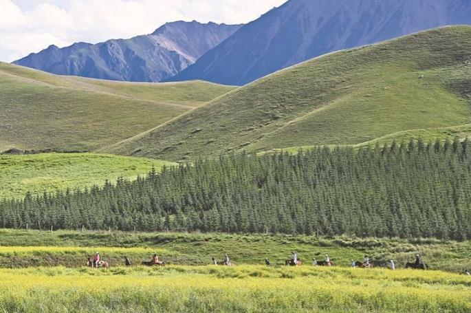 身處祁連山林,郁郁蔥蔥,清澈的溪流潺潺流淌。游客們沿著山間步道攀登,呼吸著清新的空氣,負(fù)氧離子高達每立方厘米7600多個。站在山頂,極目遠(yuǎn)眺,祁連多彩的地貌盡收眼底,紅色的丹霞地貌與翠綠的草原、金黃的油菜花相互映襯,色彩斑斕,讓人不禁心曠神怡。正在山林里帶孩子們度假的來自湖北的游客徐女士興奮地說:“這里太美了,太震撼了,我感覺就像走進了童話世界,每一處景色都讓人陶醉,尤其是讓孩子們更加體驗到了大自然的美。”
