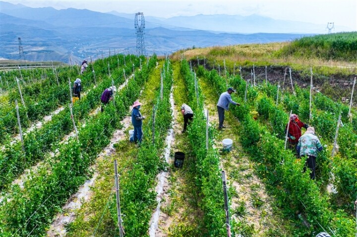 九月,自湟源縣巴燕鄉(xiāng)出發(fā),車輛沿蜿蜒山道穿行,最終抵達西嶺臺村,站在山頂高處遠眺,梯田層疊如畫,四周麥田已經(jīng)泛起成片金黃,而山間的一抹翠綠卻格外引人注目,成片的荷蘭豆苗枝葉繁茂,累累豆莢掛滿枝頭,呈現(xiàn)出一派生機勃勃的豐收圖景。