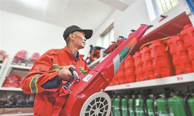 守護這片綠,防火是全年不能松的“弦”。園區的防火通道旁,紅色的滅火器箱沿路邊擺放整齊。在森林防火物資儲備庫里,管護員趙金財一邊對設備進行維護,一邊說道:“林子密了,一點火星都可能出大事。一到干燥季節,我們每天要繞著園區走好幾圈,見著游客抽煙就上前宣教,遇到枯枝落葉也及時清走。這些樹長了十幾年才這么粗,我們多上點心,才能守住這片綠。”