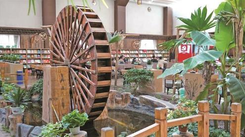 轉角步入職工書屋,中外典籍與藏文書籍整齊陳列,形成獨特的文化景觀。書架間,職工正專注閱讀有關果洛州科學技術、歷史文化類書籍。