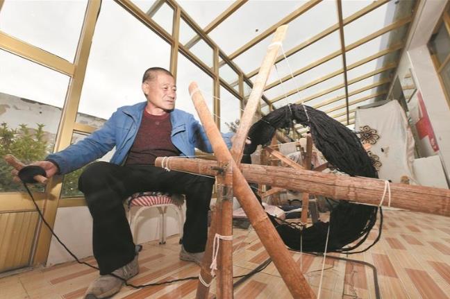 國家級非物質文化遺產代表性項目加牙藏族織毯代表性傳承人楊永良,穩坐織機前,手法嫻熟地操作著。只見他手指靈動地捻動著產自青海的藏系綿羊毛,那毛線宛如被賦予靈動的生命力,在指尖延展成細長模樣。隨后,楊永良俯下身,耐心細致地向徒弟講解編織藏毯的工藝技巧。徒弟全神貫注地聆聽,緊跟著師傅的節奏,打結、平整的動作愈發嫻熟流暢。