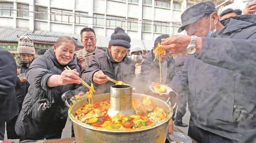 河湟鍋莊、湟中社火等富有地方特色的表演相繼展開,金塔路上喜慶熱鬧的氛圍持續升溫。“太熱鬧了!吃著免費的暖鍋,看著這么精彩的表演,好像提前過年了一樣,真開心!”蔣女士一邊品嘗暖鍋,一邊用手機記錄下這歡樂的場景。