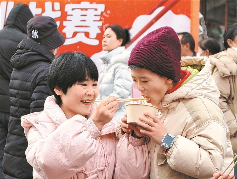 不遠(yuǎn)處,吃辣挑戰(zhàn)的嘶哈吸氣、跳遠(yuǎn)落地的喝彩,混成一片生機(jī)勃勃的交響。范玉梅喝完最后一口湯,臉頰紅撲撲的。她望向這歌舞、香味與笑臉交織的街道,碗中余溫,仿佛已彌漫成整條街的底色。